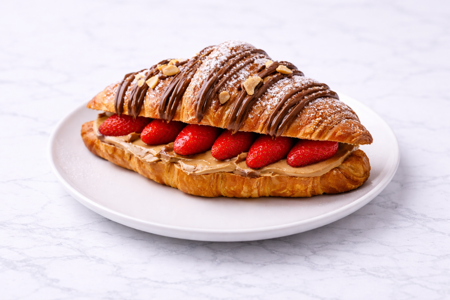 Nutella, peanut butter, strawberries on a fresh croissant